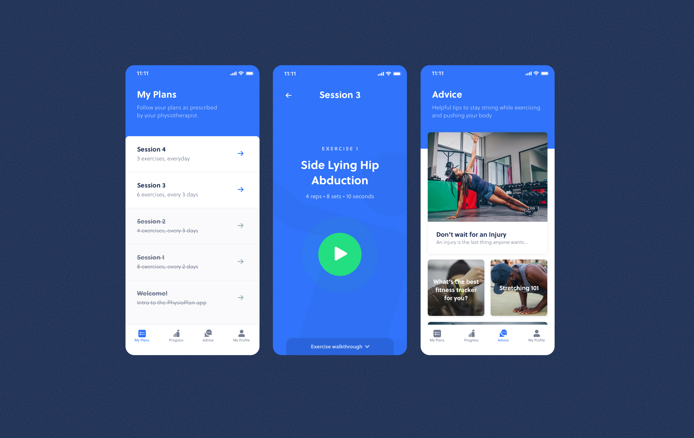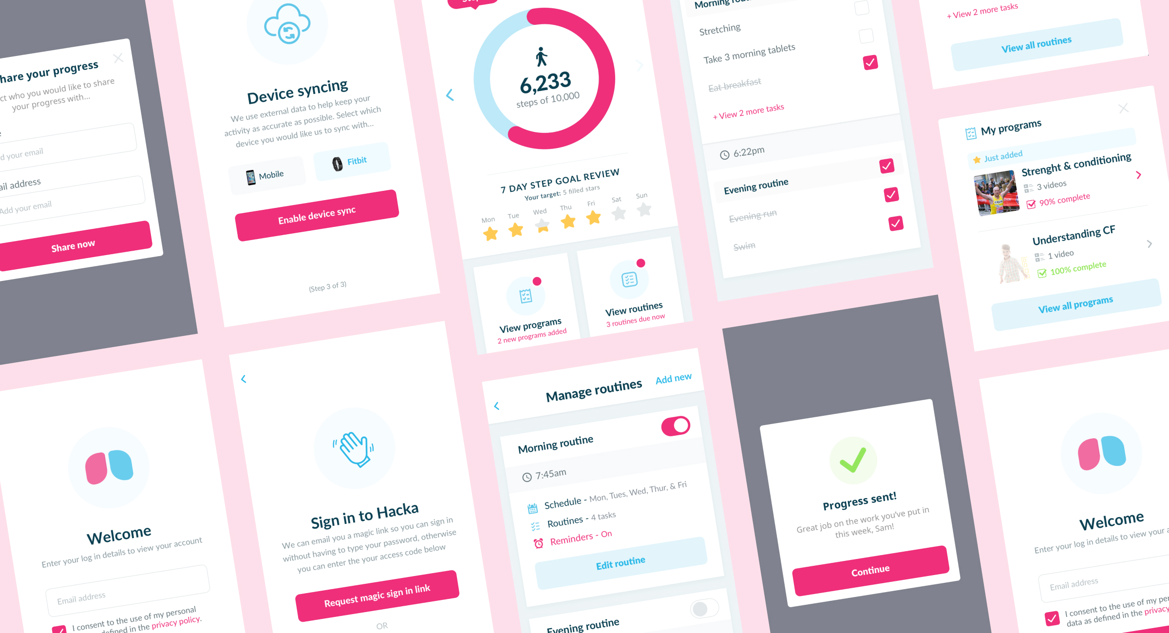 FitTech platform for prescribing and monitoring personalised exercise programs. Improved UX flows and designed more engaging product experiences.